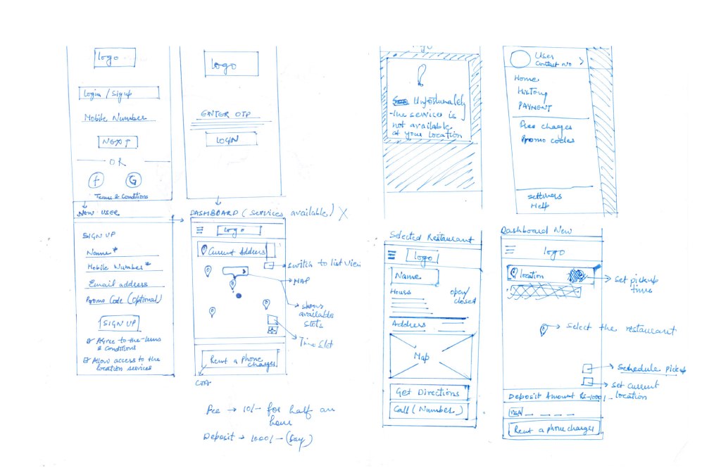 I mapped the user journey to define the process of renting a power bank and returning it. The power banks would be available at different public places similar to the concept of bi-cycle sharing.