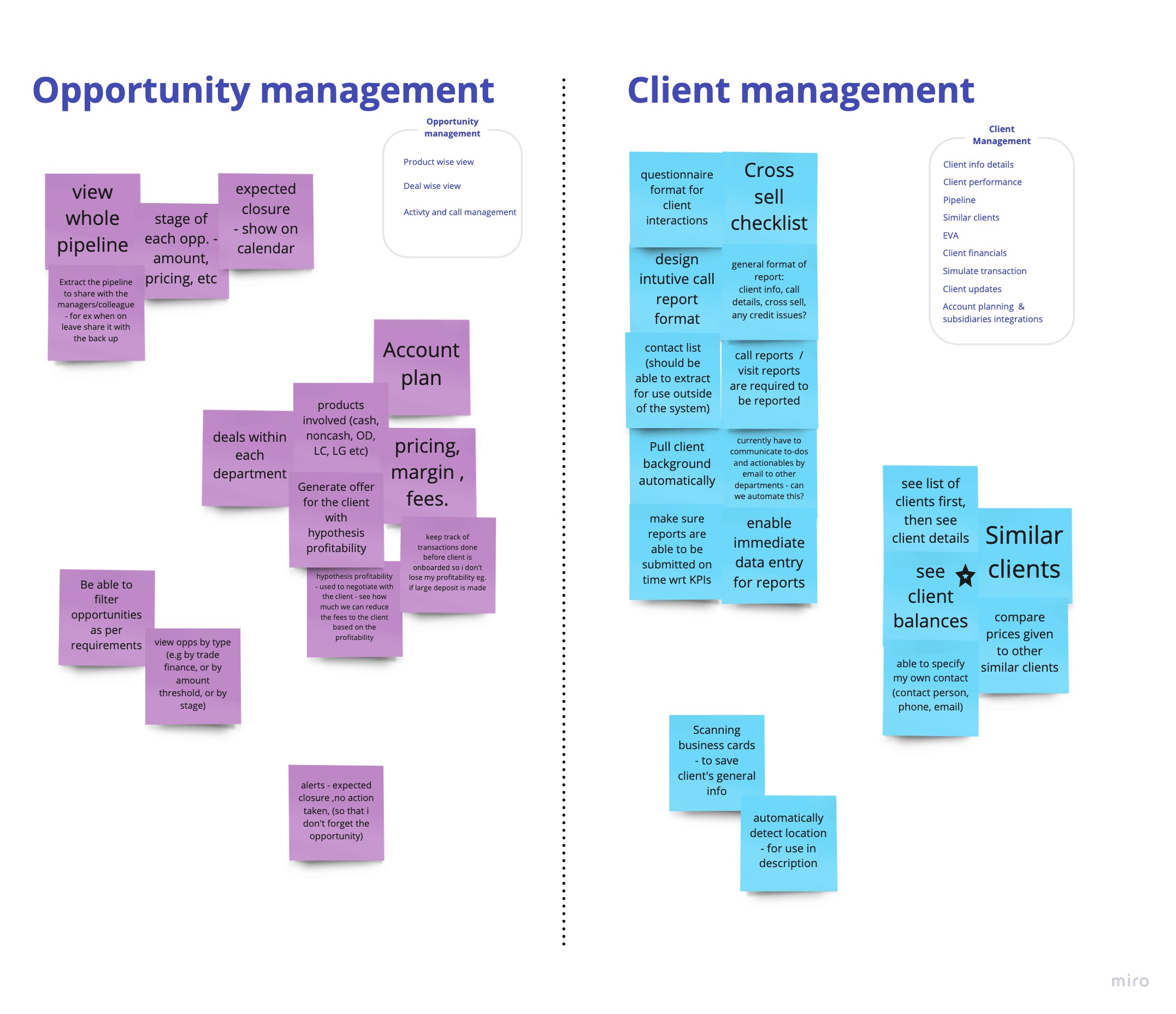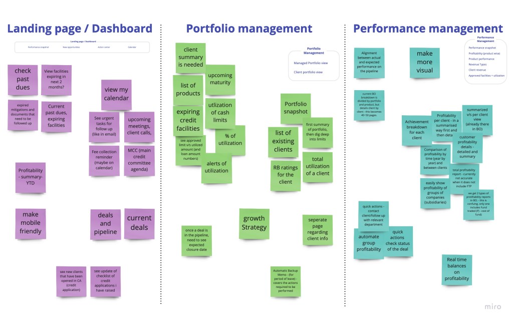 We performed affinity mapping on all the ideas captured from the ideation workshop and later prioritized these to identify critical features vs the ones nice to have.