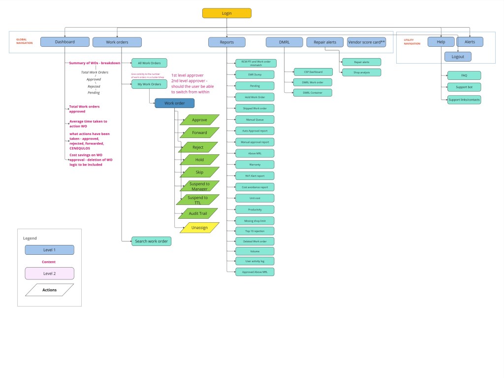 Different roles would be able to view different features and functionalities hence I structured the required features and functionalities into information architectures according to respective roles.
